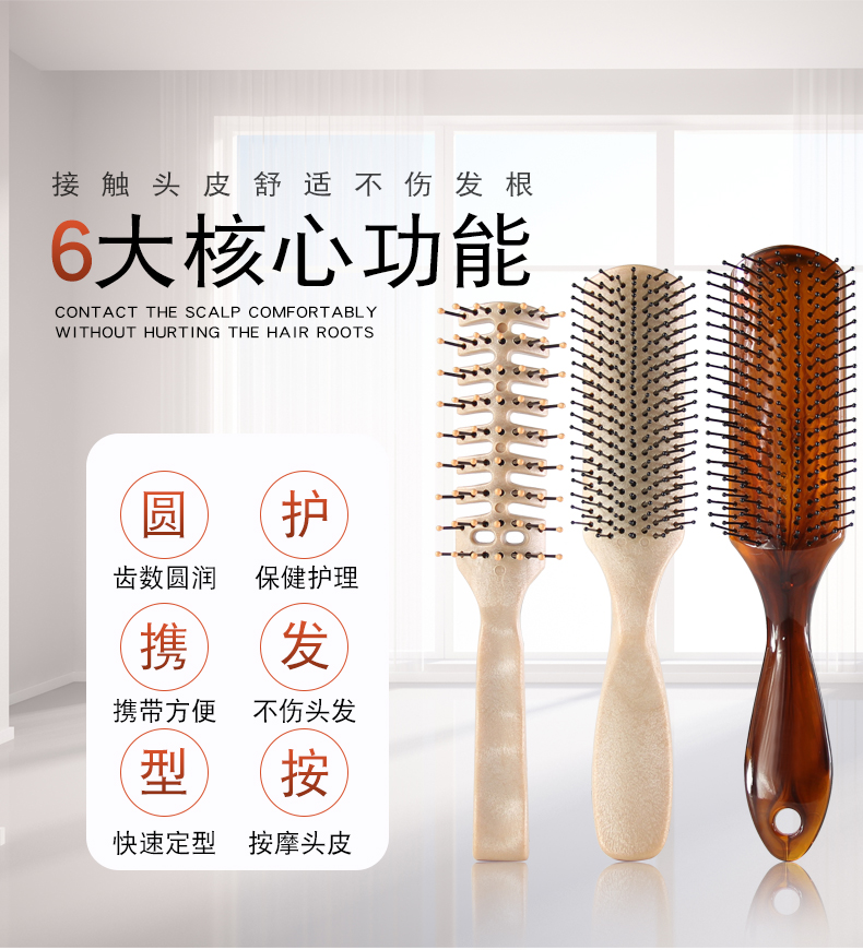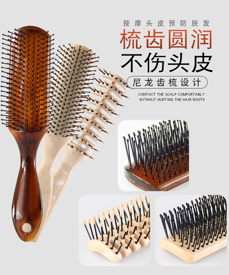 梳齒圓滑不傷頭皮 梳發順暢不打結